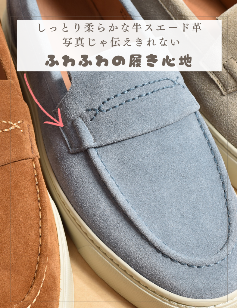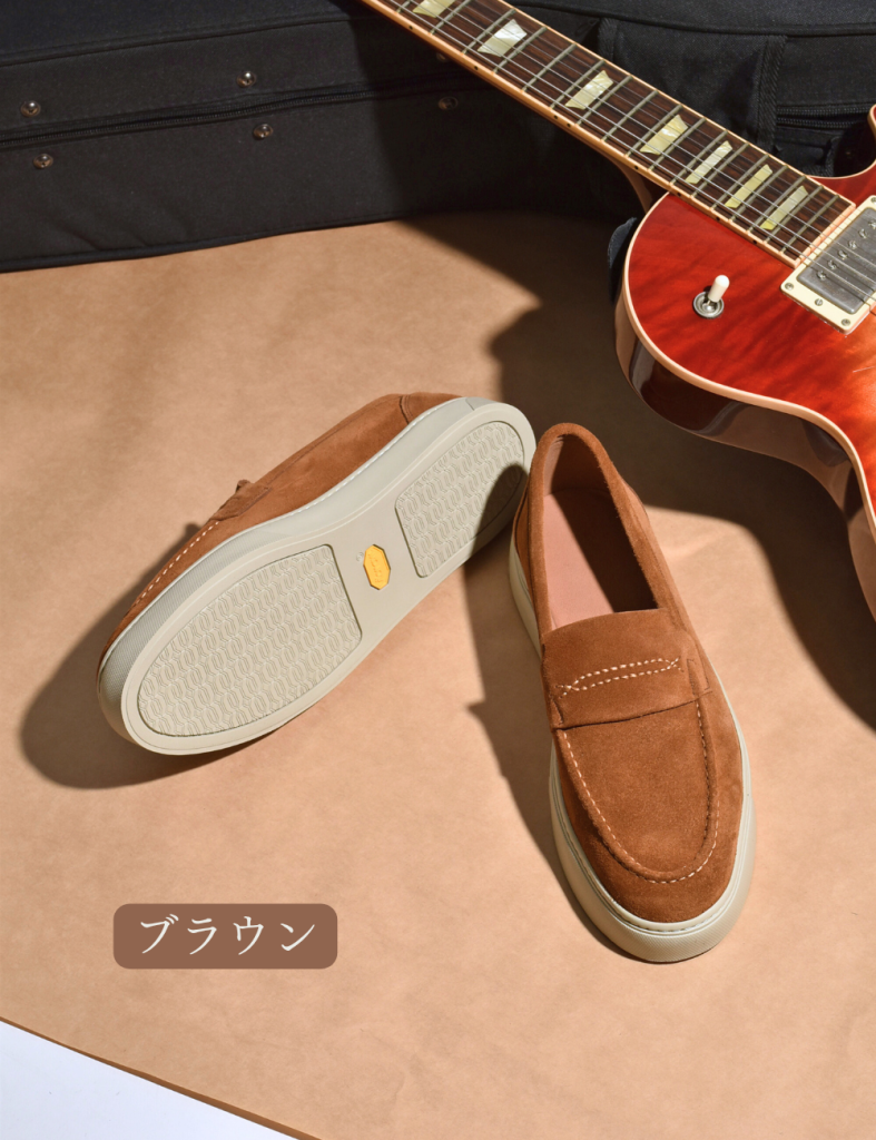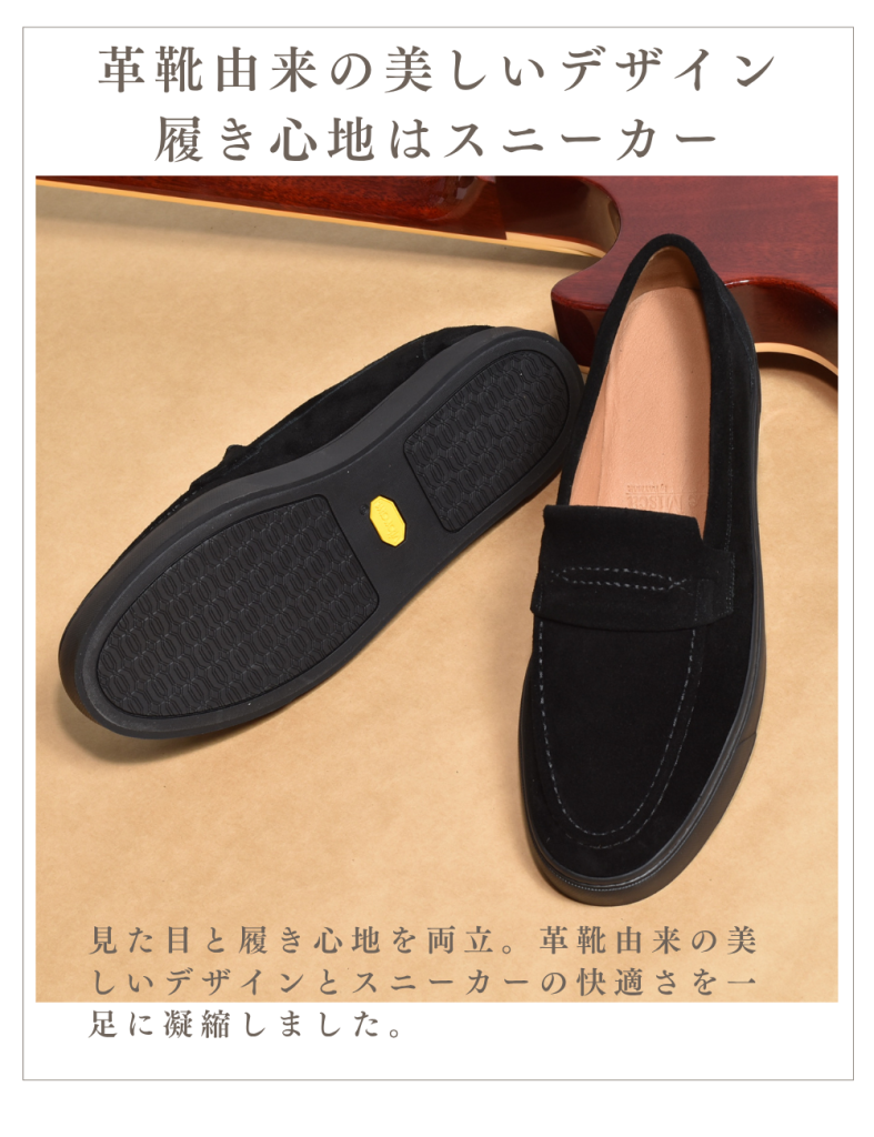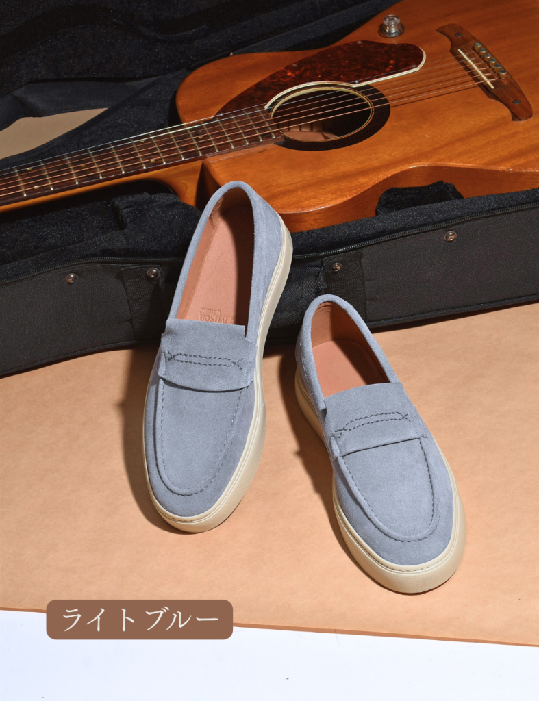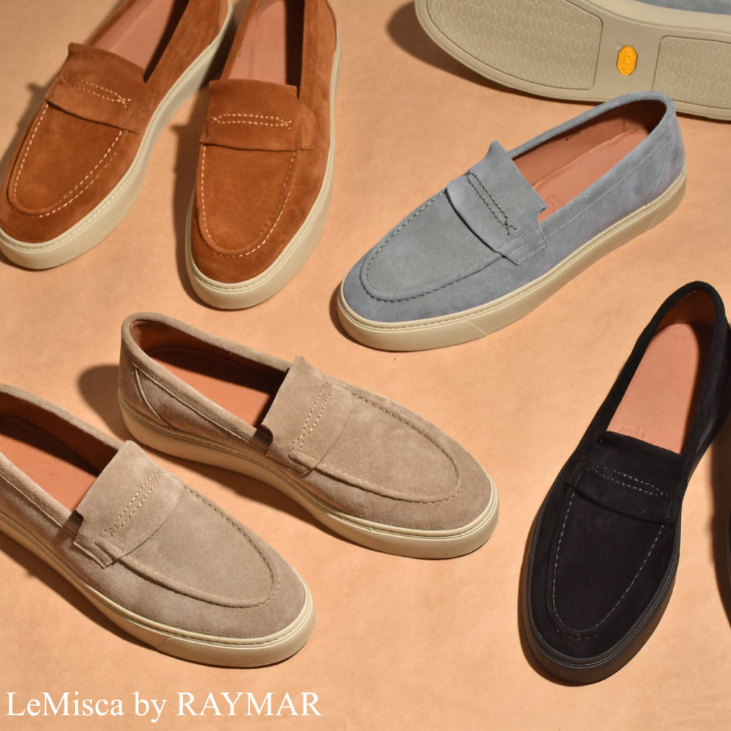 【LeMisca by RAYMAR】Kelly コインローファー ドレスレザースニーカー ブラック/ベージュ/ダークブラウン/ライトブルー 牛革スエード サイドマッケイ製法 Vibramラバーソール 23.5cm~27.5cm レミスカ レイマー スリップオン ビブラムソール