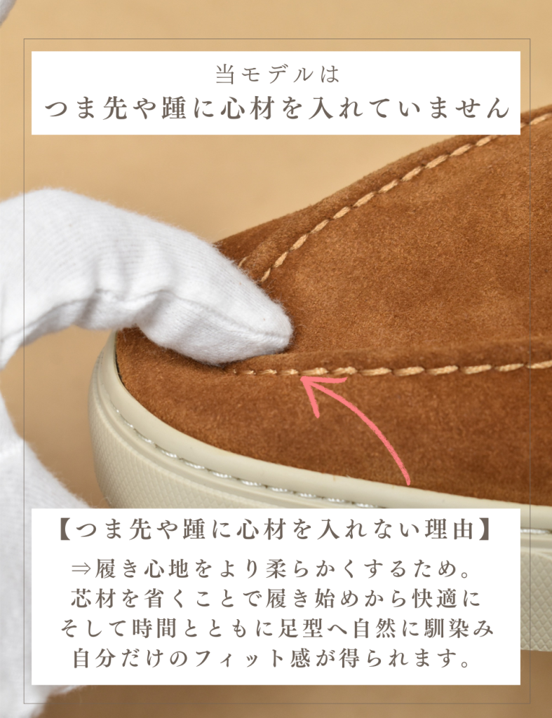 ・素材や木型の特性を考慮致しますと本モデルは「ハーフサイズアップ」がおすすめ!