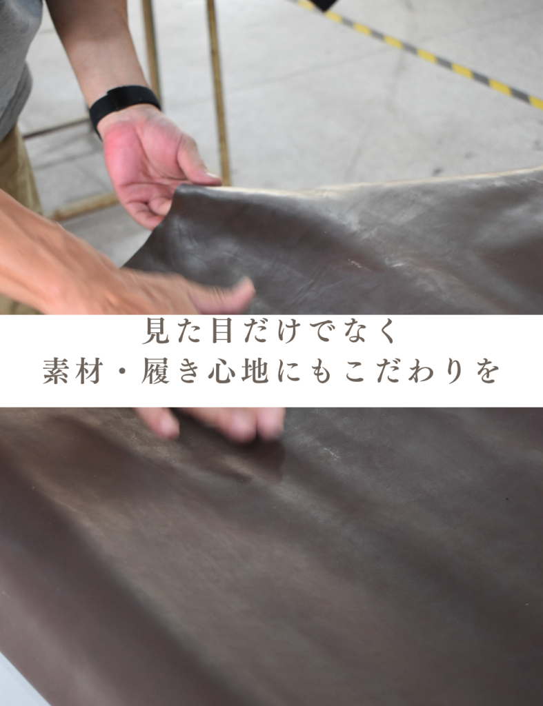 1:天然皮革の為、革の肌目や皺の入り方は1足1足異なります。